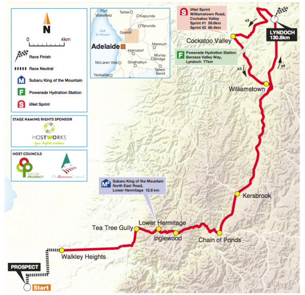 Por David Hunter Prospect – Lyndoch 130.8km La competencia arranca con una etapa al sprint que transitará el Barossa Valley, terreno harto conocido en su totalidad, excepto por el arribo, que es nuevo. La cota puntuable de montaña aparece a tan sólo 12.8km de iniciada la fracción, así que alguno de los que se metan en…