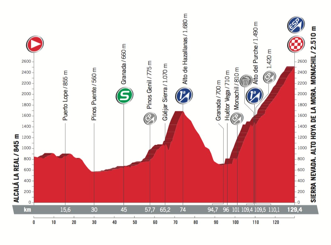 By David Hunter Alcala la Real – Sierra Nevada. Alto Hoya De La Mora 129.4km Welcome to the hardest stage of the Vuelta.