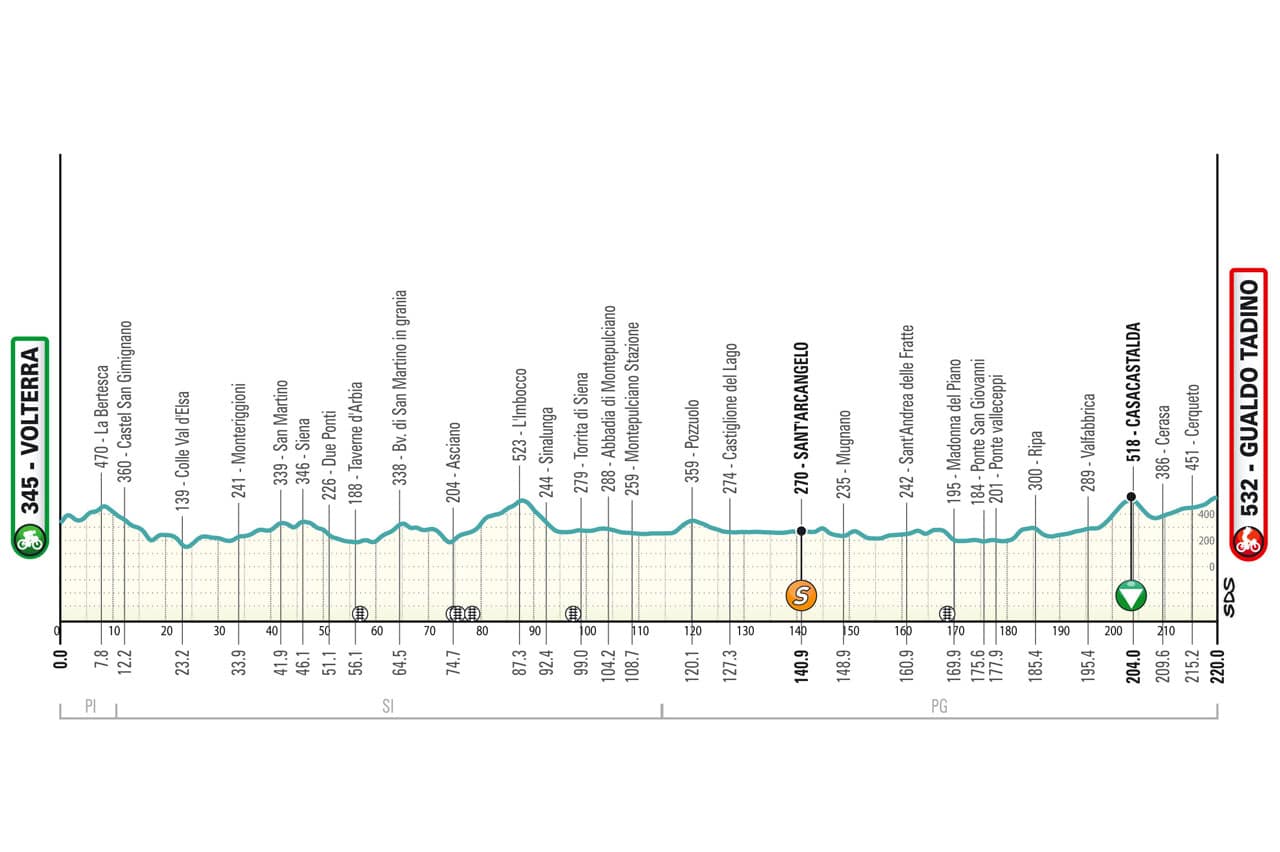 Hasta el momento, todo ha sido un aperitivo. La quinta fracción puede dar más juego en la general, con un perfil ondulado y un par de cotas en el final. Nada extremadamente duro, pero ideales para empezar a apretar.