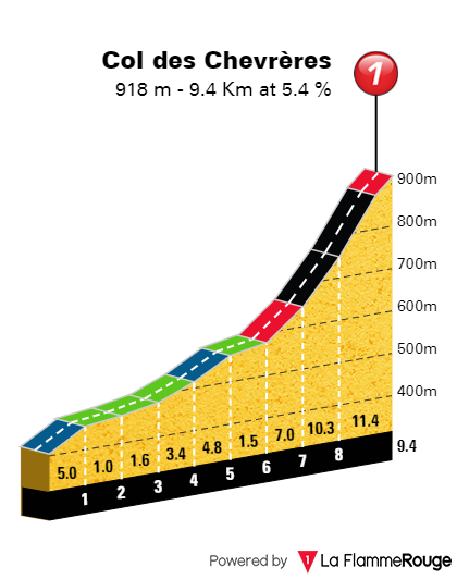 Oficialmente, Col des Chevrères consta de 9.4 km al 5.4%.