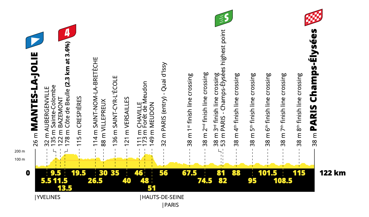 We all know this one well. You must be in position for the tunnel which comes just inside the final 2km. From there it’s all about holding that position through the Concorde, especially as some riders always try to nip up the inside. Once onto the Champs-Élysées there is 350m to go, which means you really need your final man still in front of you. Saying that, Dylan Groenewegen won in 2017. after launching his sprint from 300 to go, but not many are strong enough to do this.