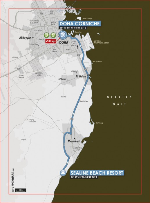 El resto parece un poco por debajo y sólo el día a día decidirá, por lo que sólo nos limitaremos a mencionar a los que podrían ser protagonistas, comenzando por Elia Viviani, que disputará el Mundial de Pista en Cali dentro de unas semanas, está en buena condición y podría aspirar a quedarse con algún parcial, lo mismo que gente obligada a hacerlo bien como Andrea Guardini y Heinrich Haussler, quiénes ya saben lo que es ganar en Qatar y se encuentran frente a las últimas oportunidades de volver por sus fueros.