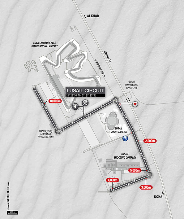 Por tercera edición consecutiva, los corredores enfrentarán una crono individual de 11 kilómetros por los alrededores de Lusail. Los que siguen el evento, ya saben qué esperar y, para esta ocasión, apenas si han retocado el circuito.
