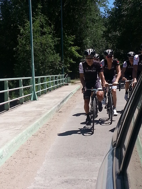 El amable técnico francés guió a sus atletas durante tres horas camino al Trapiche con el sólo auxilio de este corresponsal que incluso, entregó bidones y otros menesteres a los pedalistas.
