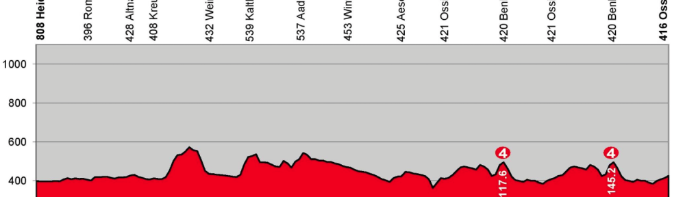 Although the profile makes the end of the stage look hard, it isn’t very difficult. The road rises gently for the last couple of kilometres, but shouldn’t take the edge off anybody’s sprint.