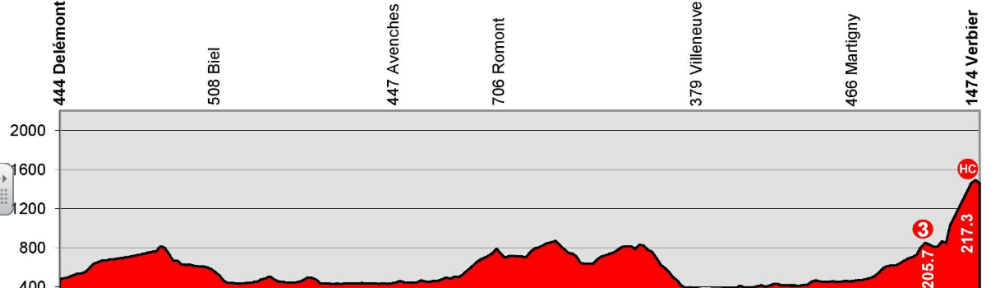 Officially, the climb is 25.7km at 3.7% This doesn’t do it justice. The final 8.2km is at an average of 7.8%. This is a very difficult climb! The race was here in 2012, and Rui Costa won the stage, breaking the heart of Frank Schleck. He had attacked with 6km to go and looked like securing a win, but Costa pulled him back with 200 metres to go. It featured in the 2009 Tour de France, with Alberto Contador taking the stage. The Spaniard made the winning move by attacking with 5.6km to go.