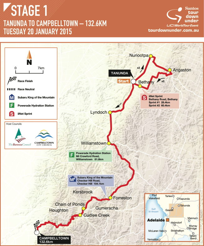 El Tour Down Under comienza con su usual etapa inaugural, un día para que los velocistas se vistan de líderes. Pero dicho esto, el perfil no es tan amigable para ellos como hubieran esperado.