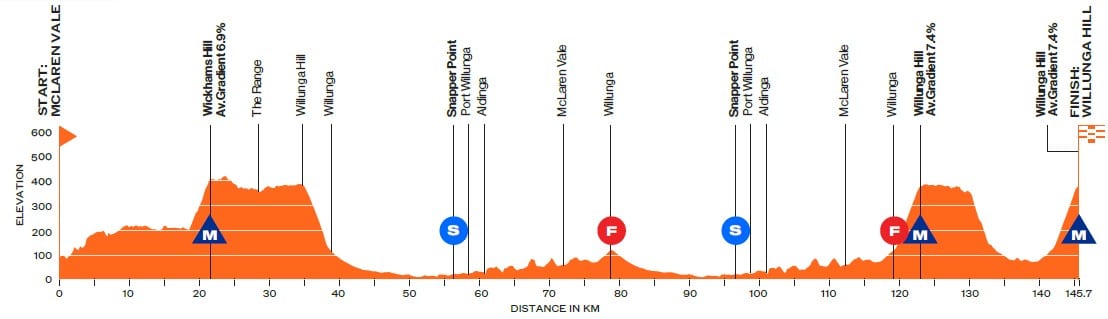 Etapa 5: McLaren Vale – Willunga Hill 145.7 km