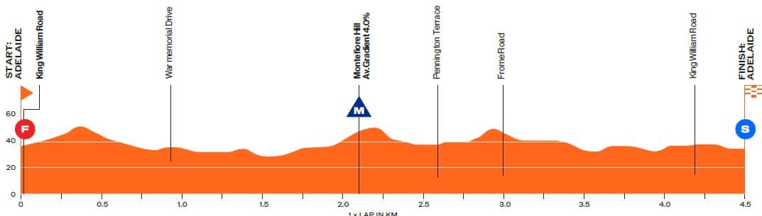 Esta edición del Tour Down Under cierra con un circuito urbano en Adelaida totalmente llano en el que ya no habrán diferencias de tiempo. Oportunidad que queda muy bien para los sprinters más puros que vengan a esta carrera de estar 100% en su elemento.