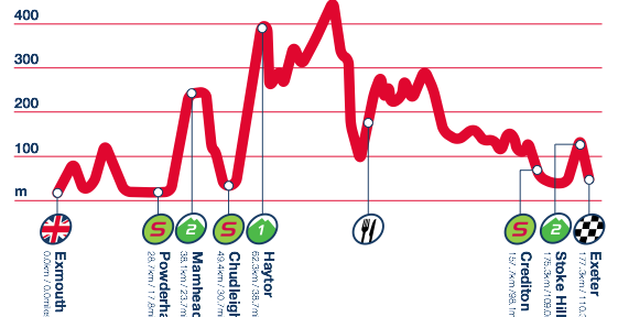 They pass over Haytor Hill, home of the “summit”finish, from 2013. It’s not the hardest climb in the world, and appearing so early in the stage will ensure it’s done at an easy pace.