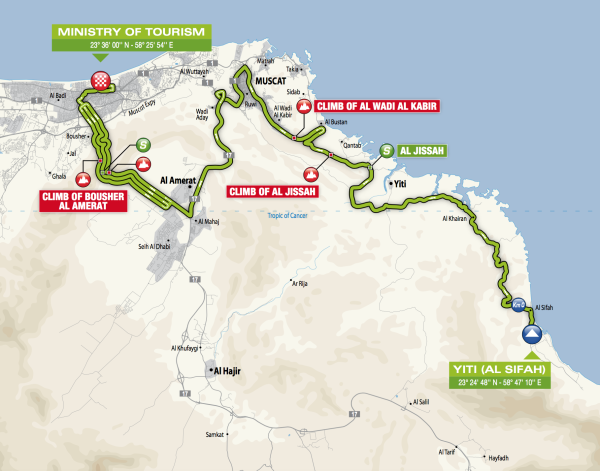 This stage sees a mix of tactics, as GC riders and stage hunters will be gunning for glory. It is possible for a team like Astana to split the race early on, it’s the type of tactic they love. Once into the al Amerat climbs, the GC riders have to decide if they really want to go full gas.