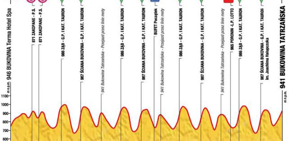 The climb to Bukowina ends the race and is on a long, straight road. This is the easier of the two climbs, but still very hard.