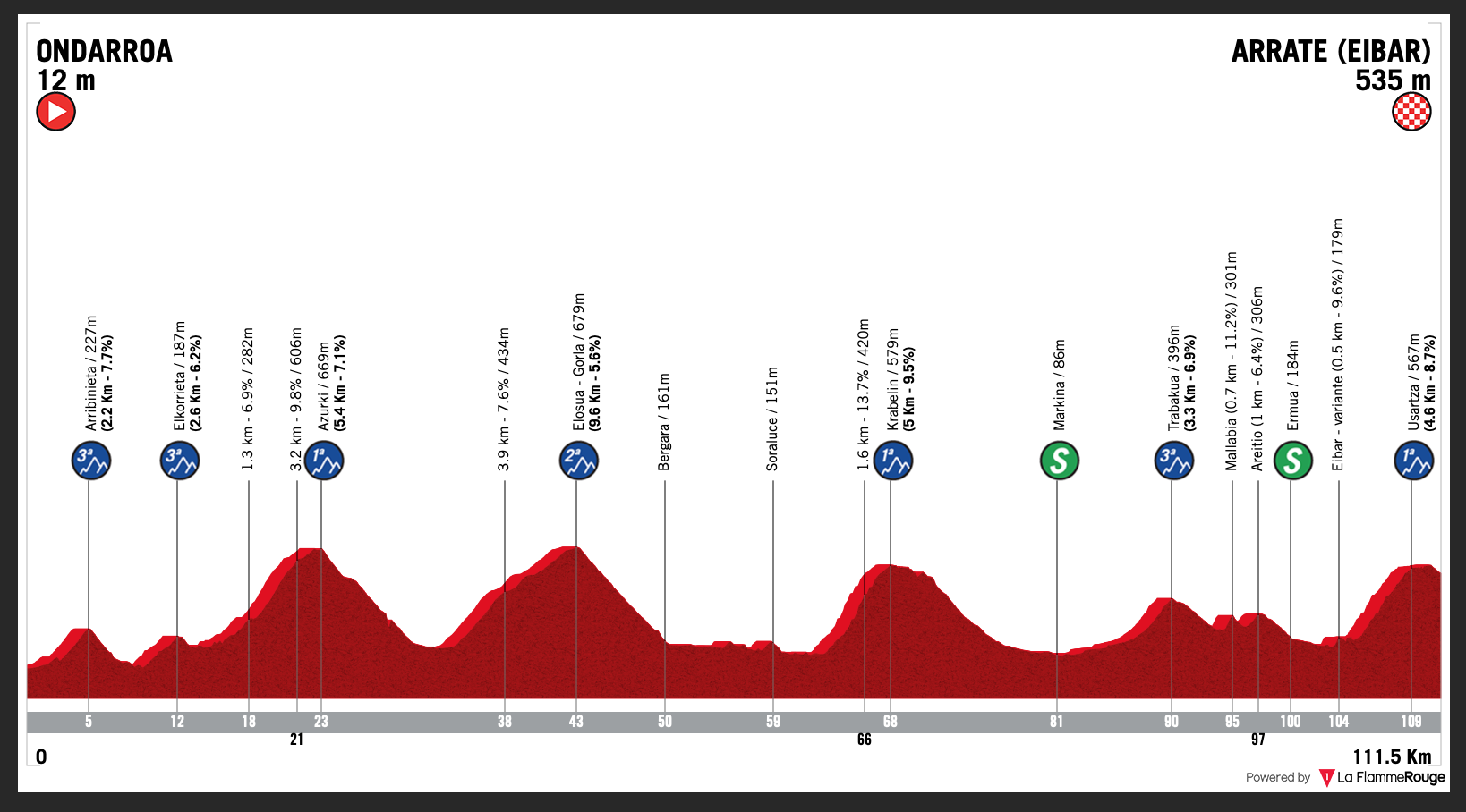 We end with the normal Arrate climb, 6.7km at 5.8%, but that does include the downhill run to the finishing line. Last time we were here it was the opening stage of the Vuelta and a certain Primož Roglič took the win.