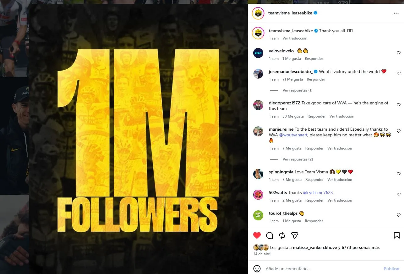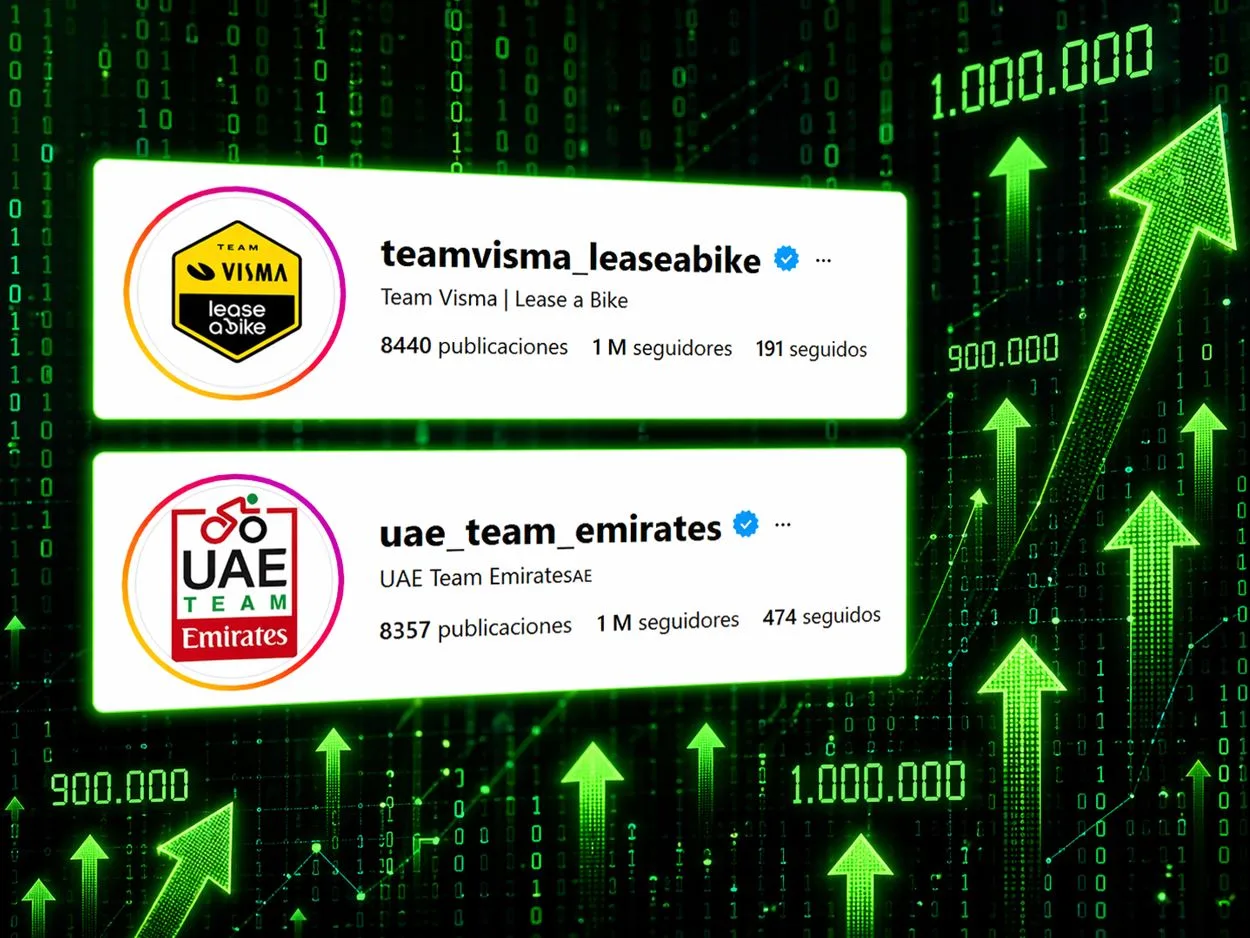 Con bombos y platillos, Visma – Lease a Bike había anunciado en sus redes sociales hace días atrás la llegada del millón de seguidores en Instagram, un número que puede no parecer mucho pero lo es para los equipos de ciclismo, que les cuesta (con sus continuos cambios de colores y nombre) generar aficionados. Días después y de forma repentina, UAE logró la misma marca e incluso superó los números de Visma, con incrementos diarios de seguidores sorpresivos y sin que haya un hecho -como lo fue la victoria de Wout van Aert para el equipo neerlandés– que lo explique. ¿Fue todo orgánico? ¿O nuevamente intervino el poder de la billetera para combatir a la competencia?