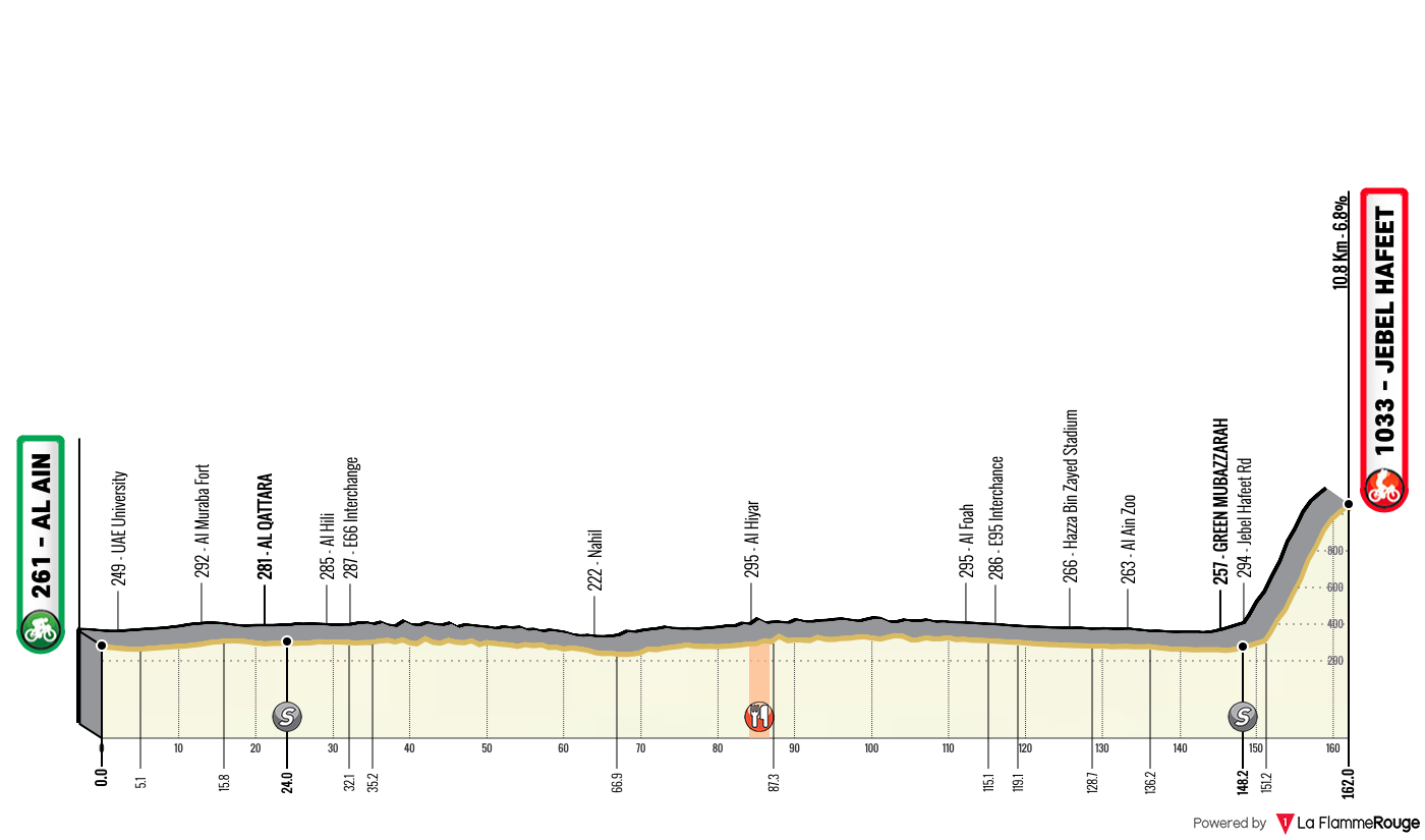 This is the first time we’ve had a climb of Jebel Hafeet when the GC has already been blown apart. This could mean a breakaway succeeds, it could be the morning break, or a move at the start of the climb. We’ll have to wait and see what happens, but it looks like another boring day for the riders fans alike, unless the wind blows.