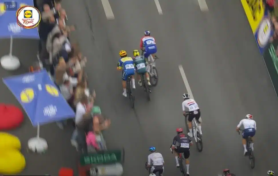 Ya lleva cuatro tarjetas amarillas con la de hoy, pero sin ningún tipo de descalificación de carrera o sanción. Danny van Poppel volvió a hacer de las suyas (Red Bull – Bora) en el final al sprint de la tercera etapa del Tour de Alemania y esta vez le quitaron el triunfo de etapa al desviarse de su línea y cerrar tanto a Søren Wærenskjold (Uno-X Mobility) –ganador de la etapa tras la sanción- como a Matthew Brennan (Visma – Lease a Bike). Émilien Jeanniére (TotalEnergies) terminó segundo y Sam Watson (Ineos Grenadiers) tercero.