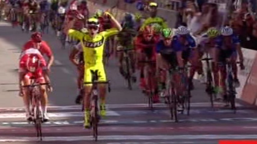 Rincón cruzó por la meta con unos pocos segundos sobre Nikita Stalnov (Astana City) y festejando, convencido de que había ganado el parcial. No fue así para su sorpresa y fue cazado por el kazajo, que luego lo dejó cortado.