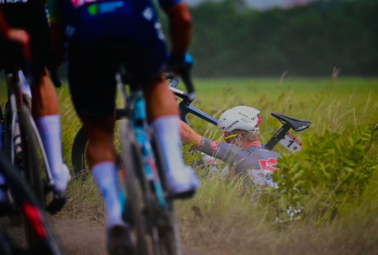 “Calculé mal una curva. La confundí con otra y luego también me salí. La cuneta se acercó muy rápido”, explica a Wielerflits. “Por lo demás, me vendría bien mi experiencia en cross. Pasé las curvas bastante bien. Los daños tampoco son graves. Por desgracia, pinché después y, al caerme a siete kilómetros de la meta, volví a quedar fuera”.Del Grosso disfruta competir y, en este momento de su carrera, no le importa no luchar por victorias. Cuando Kielich se fugó, inmediatamente aceptó un nuevo rol: el de parar e interceder a quienes tiraban del pelotón junto a sus compañeros Stan Van Tricht y QuintenHermans.