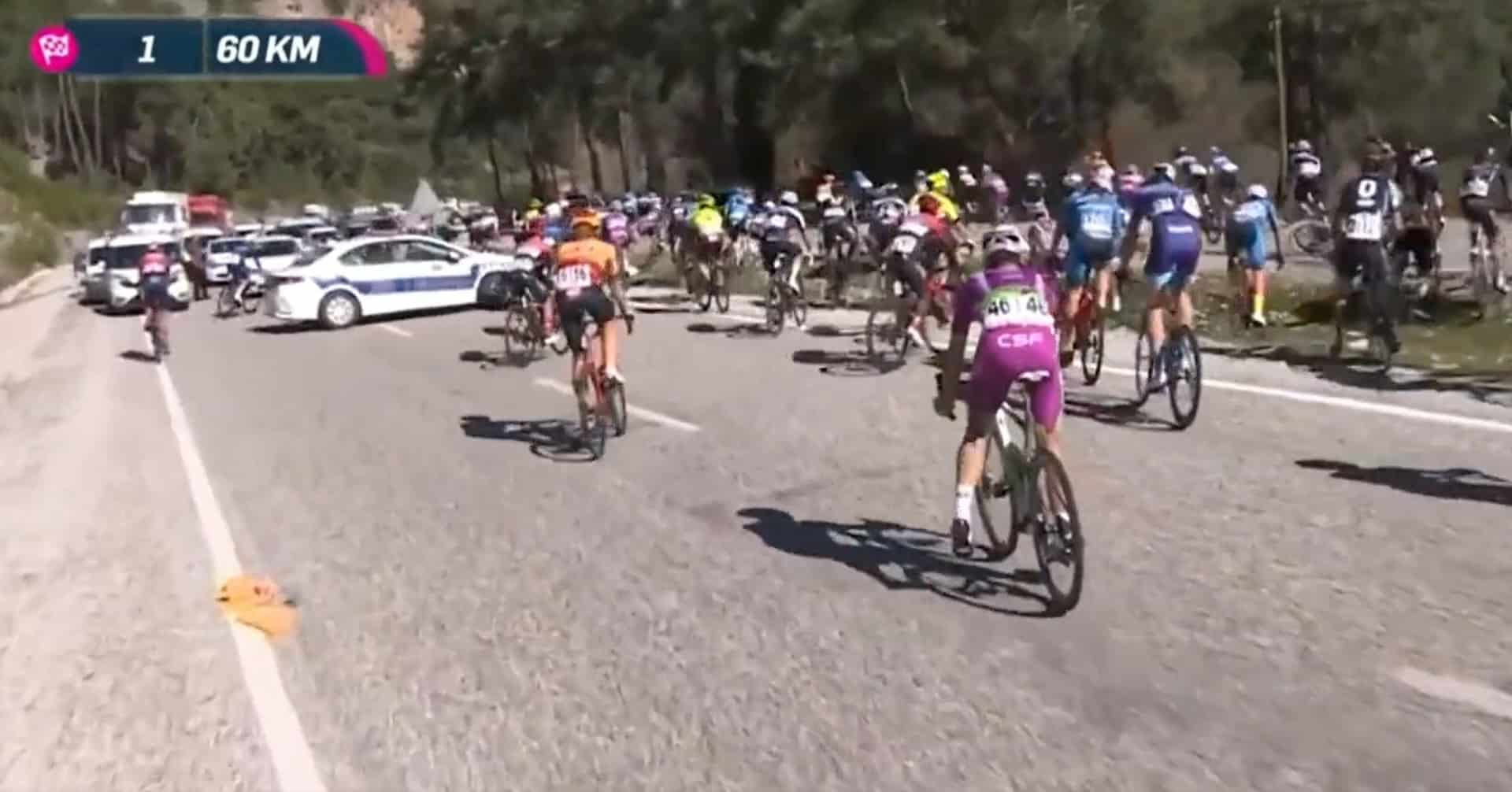 El Tour de Antalya vivió un momento inédito cuando el pelotón tuvo que cambiar de carril, porque iban en contravía en una carretera que estaba abierta al flujo de vehículos. Afortunadamente un coche de policía tenía detenidos a los demás autos para así evitar males mayores.