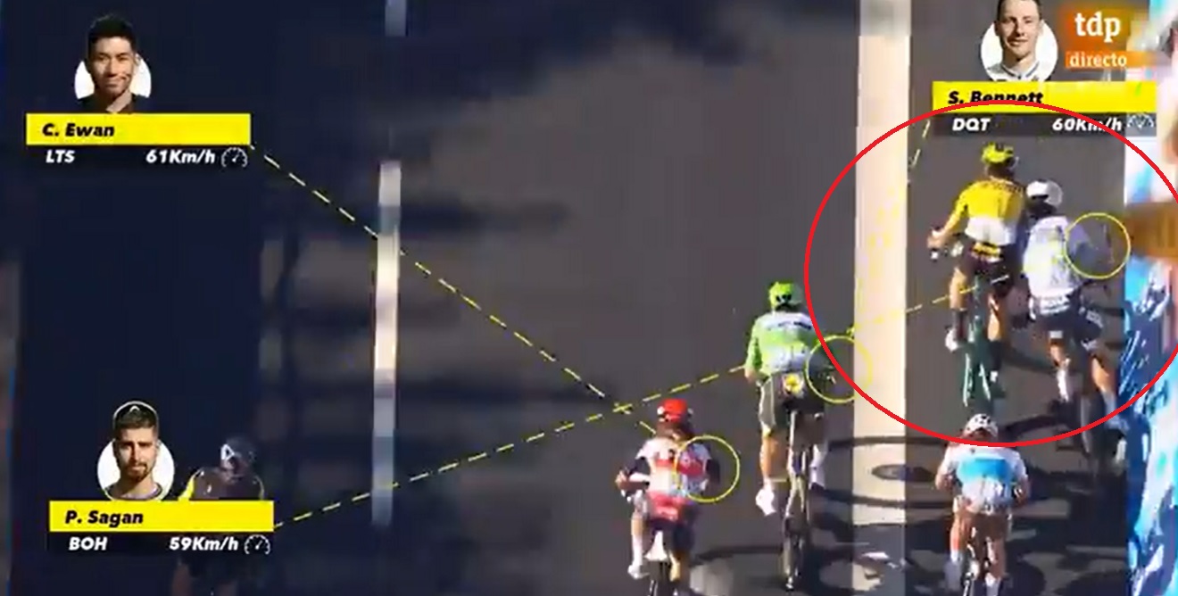 En la definición por el vencedor de la jornada de este miércoles, Sagan protagonizó una polémica acción, que recordó a algunos la maniobra que se saldó con la grave caída de Fabio Jakobsen (Deceuninck-Quick Step) en el Tour de Polonia. Dicho accidente parece haber abierto los ojos del mundo ciclista y dejar de tomar como “normales” acciones peligrosas que ocurren en cada embalaje masivo.