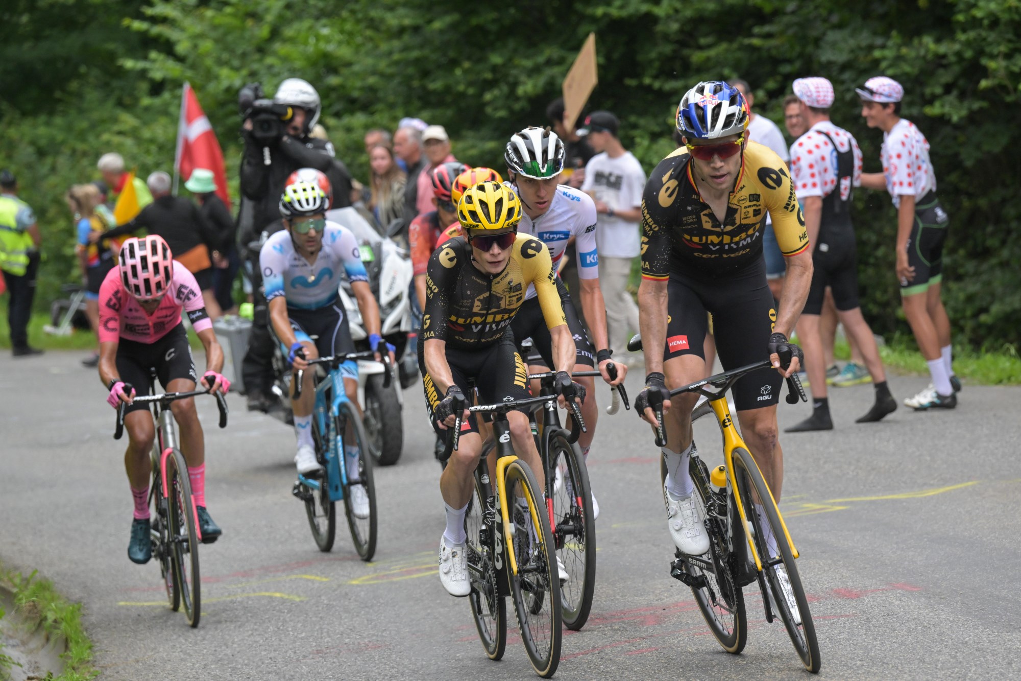 Va a ganar el mejor, Podacar ha demostrado ser superior a Vingergaard y ya agarro ritmo en la segunda semana solo se tiene que poner a rueda y atacar en las etapas de ascenso como lo ha hecho y seguir descontando, por muy buen equipo que tenga Jumbo y con todo y Van Aert que es un crack, no veo la forma que puedan evitar la aceleración de Podacar en las etapas que faltan y terminan en subida y por su falta la cronometrada que parece que se la mandaron hacer a Podacar donde es imbatible y seguro le saca a Vingergaard mínimo de 20 a 30 segundos como mínimo… ganará el mejor o el mejor equipo…