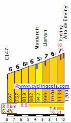The most difficult part of the climb is the very beginning. The first six kilometres contain consistently challenging gradients. The climb begins with 9% and the penultimate kilometre is also 9%. This is where you’ll find the steepest part of the whole climb, but not many riders will be around at this point.