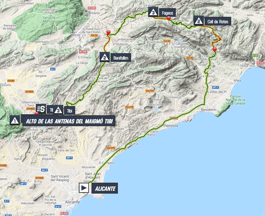 Es la etapa reina de la Volta a la Comunitat Valenciana y como tanto nos tiene acostumbrados España, ¡es un día murito! Ahora, no es exactamente la más corta de las subidas, pero las rampas empinadas finales serán agotadoras. Pero antes de eso, los ciclistas deben pasar un día montañoso dentro de las colinas cerca de Alicante, donde muchos entrenan durante el invierno.
