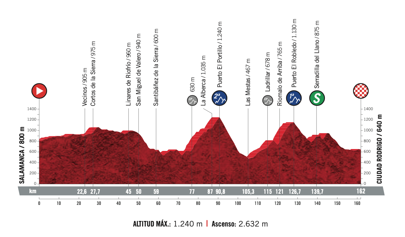 Lo extraño de este parcial es que, pese al puerto de 1ra, el día podría acabar al sprint. Las dos trepadas están sobre estimadas, todo lo contrario a lo que suele suceder con la Vuelta debido a los errores en la guía oficial.