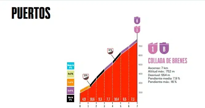 7 km al 8%, con rampas que alcanzan hasta el 16% de pendiente. El propio perfil deja en claro que es una subida para escaladores puros, con la dureza suficiente como para que la fuerza de ese tipo de corredor se haga sentir y quizá, le baste para inclinar la balanza a su favor. La cima se encuentra a 23 km del cierre.