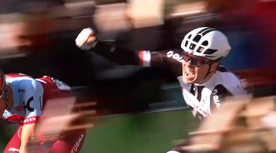 Gaviria perdió toda opción en el sprint por intentar un ataque faltando 2 kms. Yo creo que esos deseos de ser clasicomano le hacen mas daño que bien.